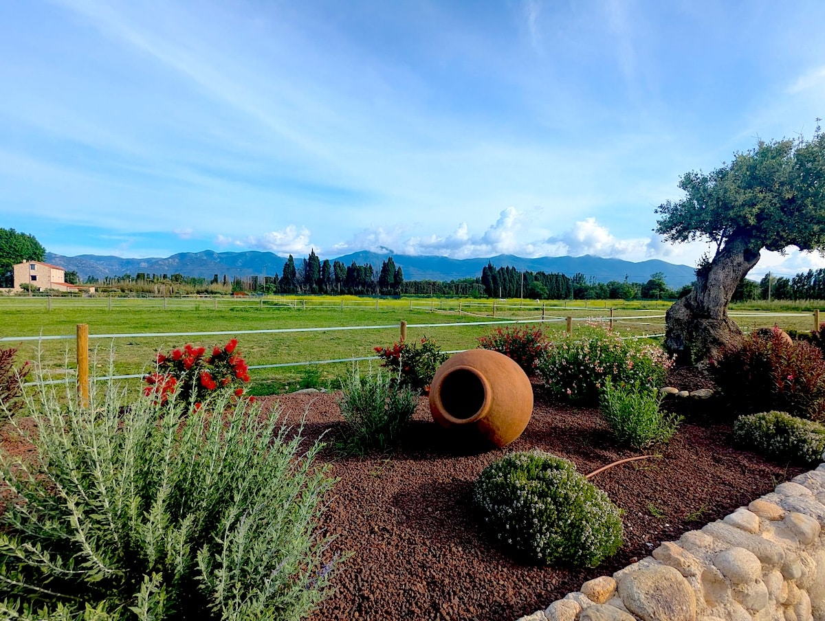 À l’extérieur, profitez d’une vaste terrasse privée et d’un jardin méditerranéen ouvert sur un panorama exceptionnel : les Albères et le Canigou en toile de fond. Pour des instants de détente absolue, un spa privatif vous attend, dans un environnement apaisant de 3 hectares de campagne, entre chevaux et vergers.